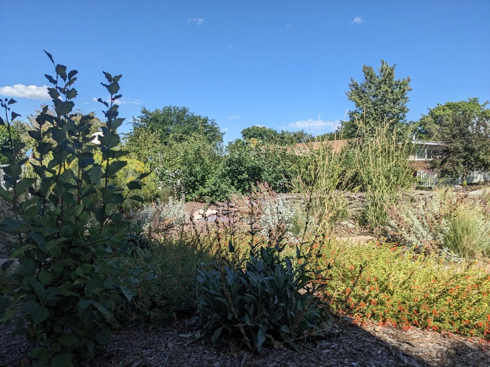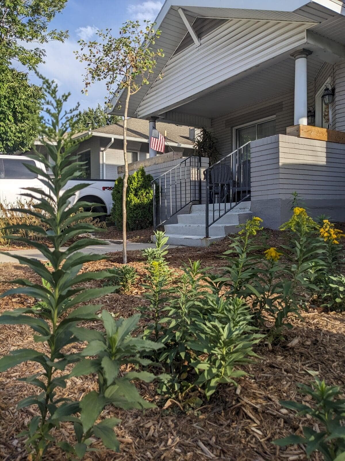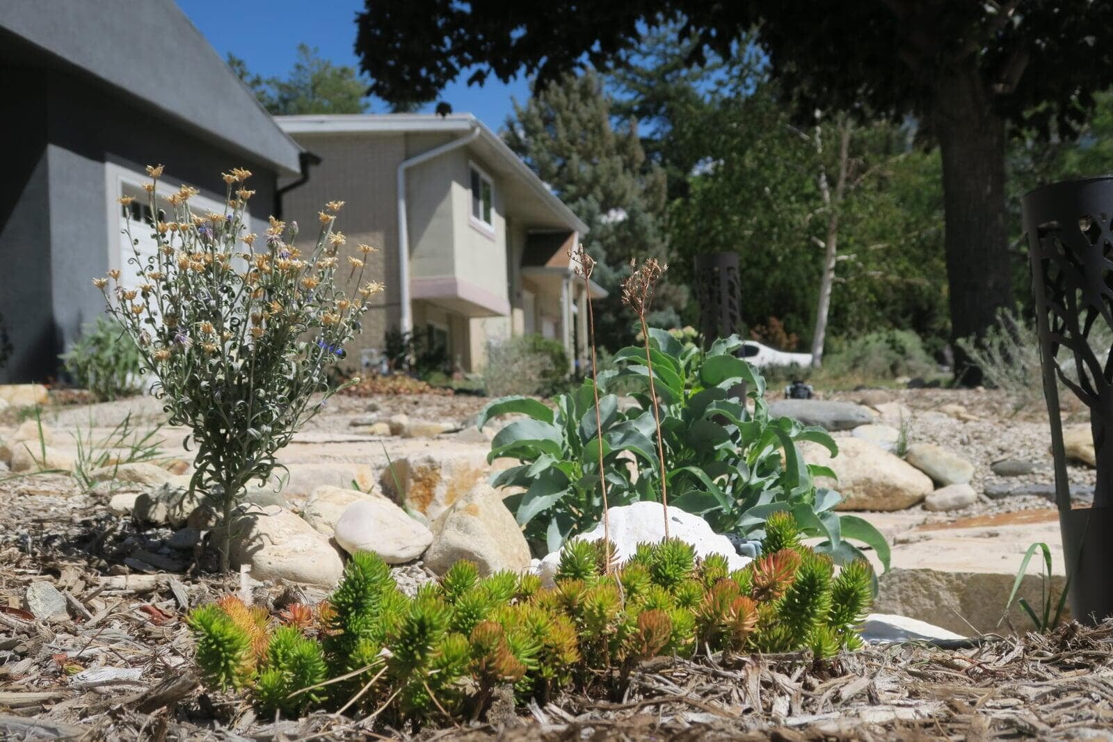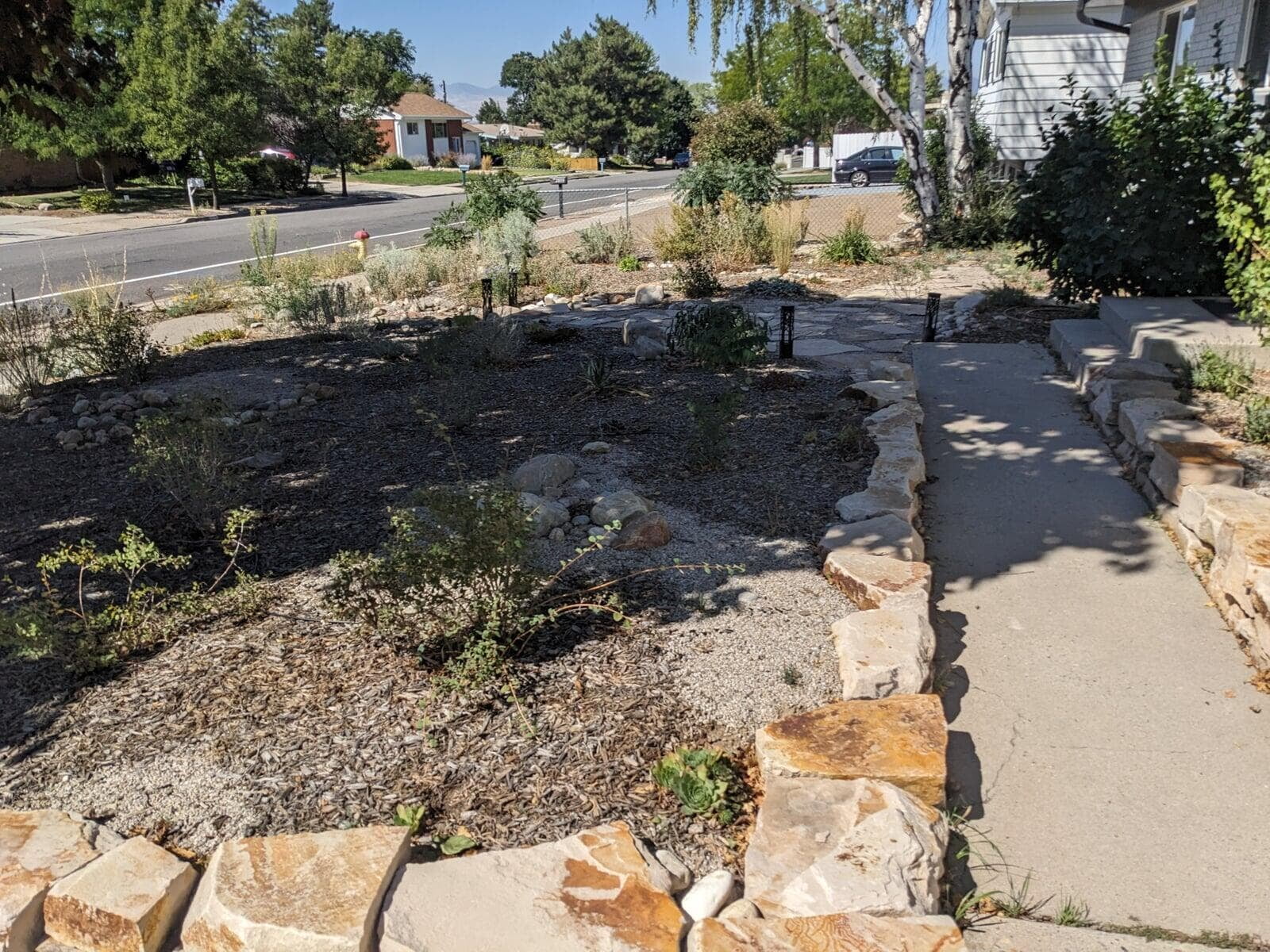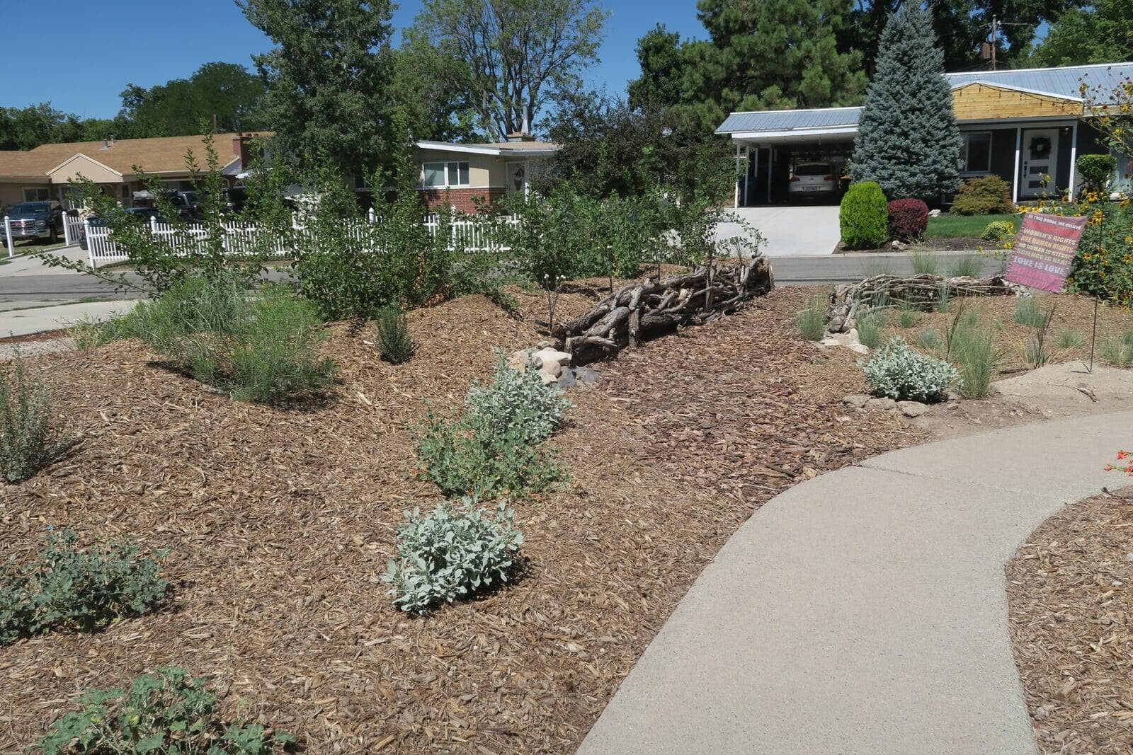 A significant number of the plants in this project survive without any supplemental irrigation. Despite the tight water budget, neighbors appreciate the yard over the numerous lawns in the area.