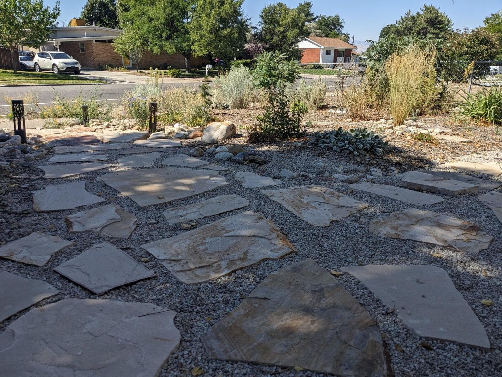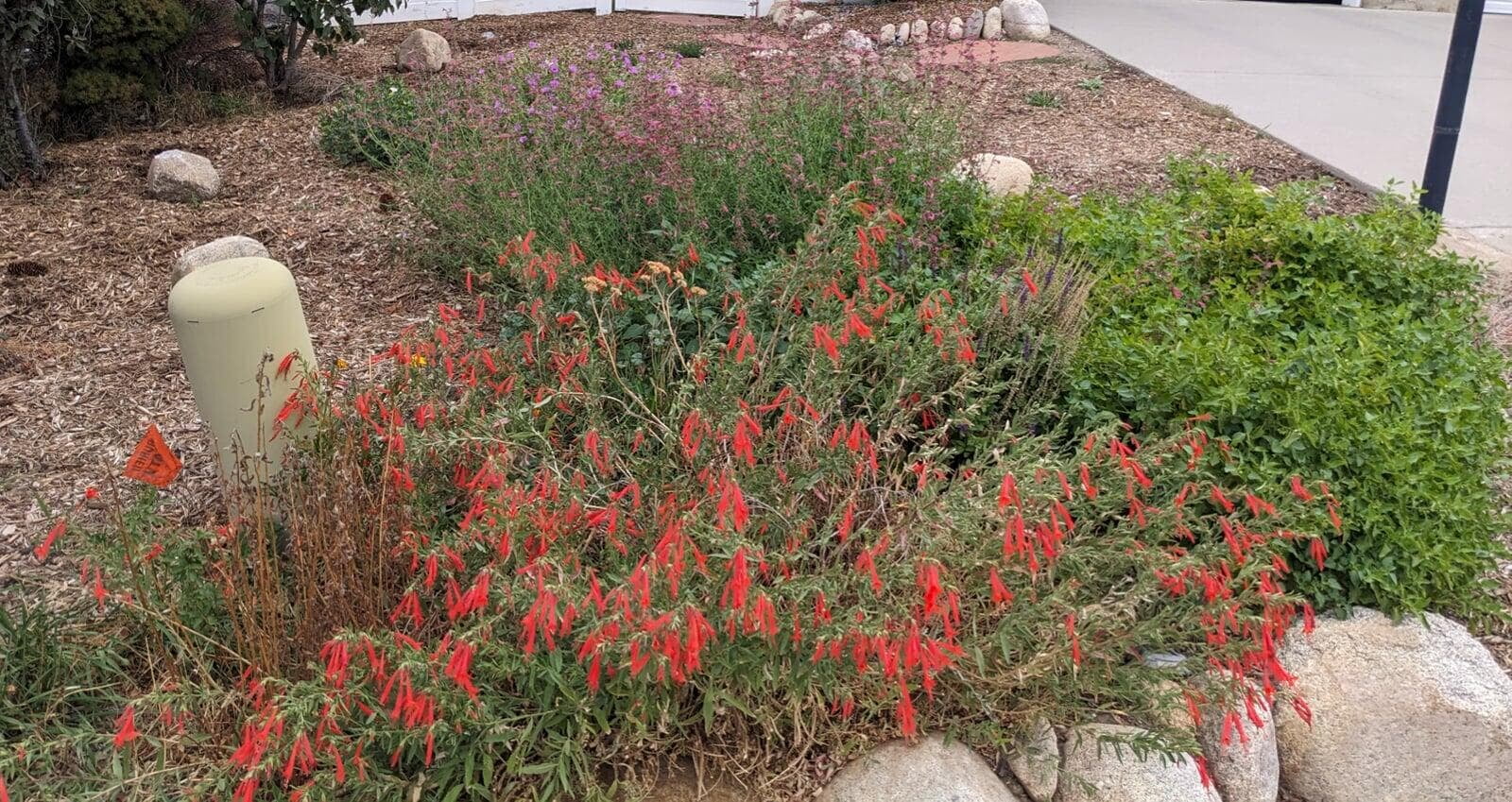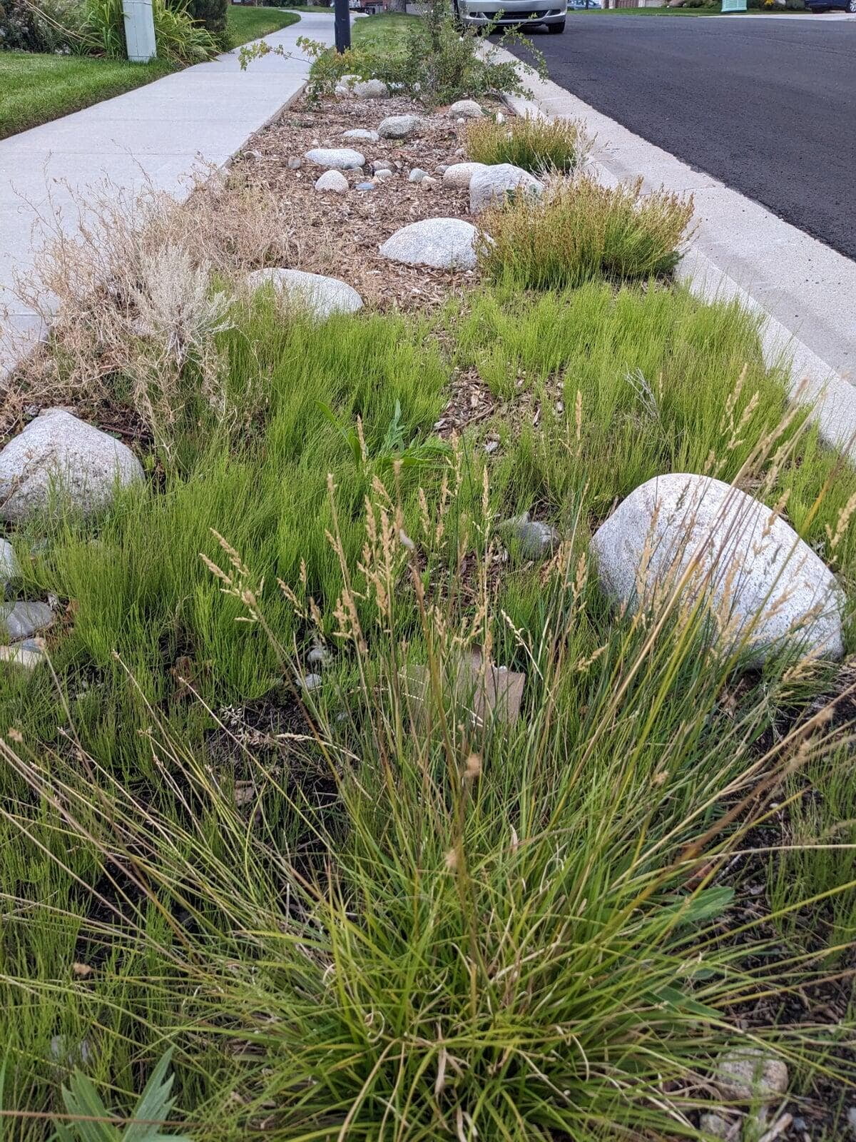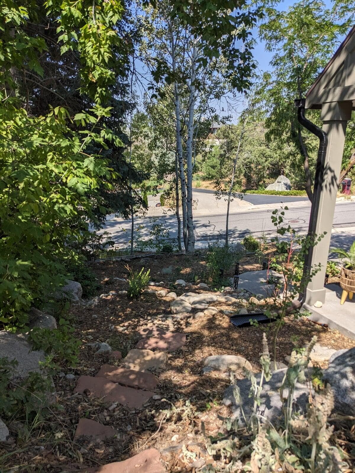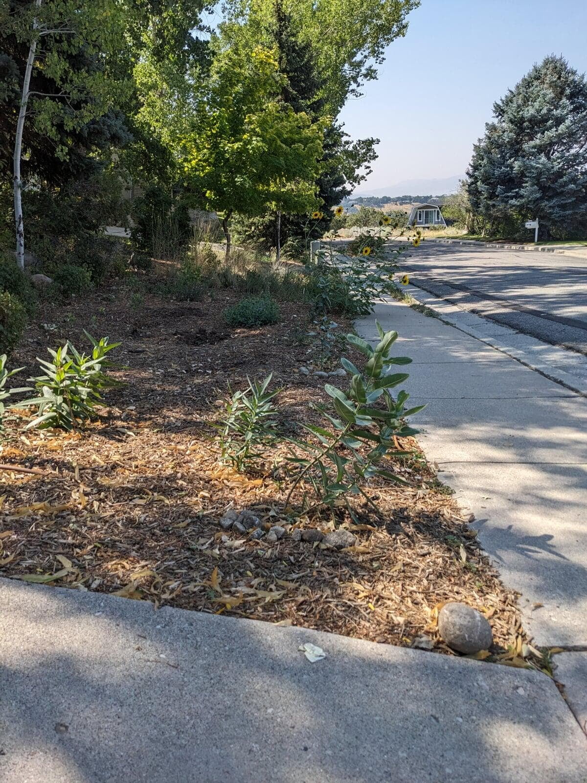A significant number of the plants in this project survive without any supplemental irrigation. Despite the tight water budget, neighbors appreciate the yard over the numerous lawns in the area.